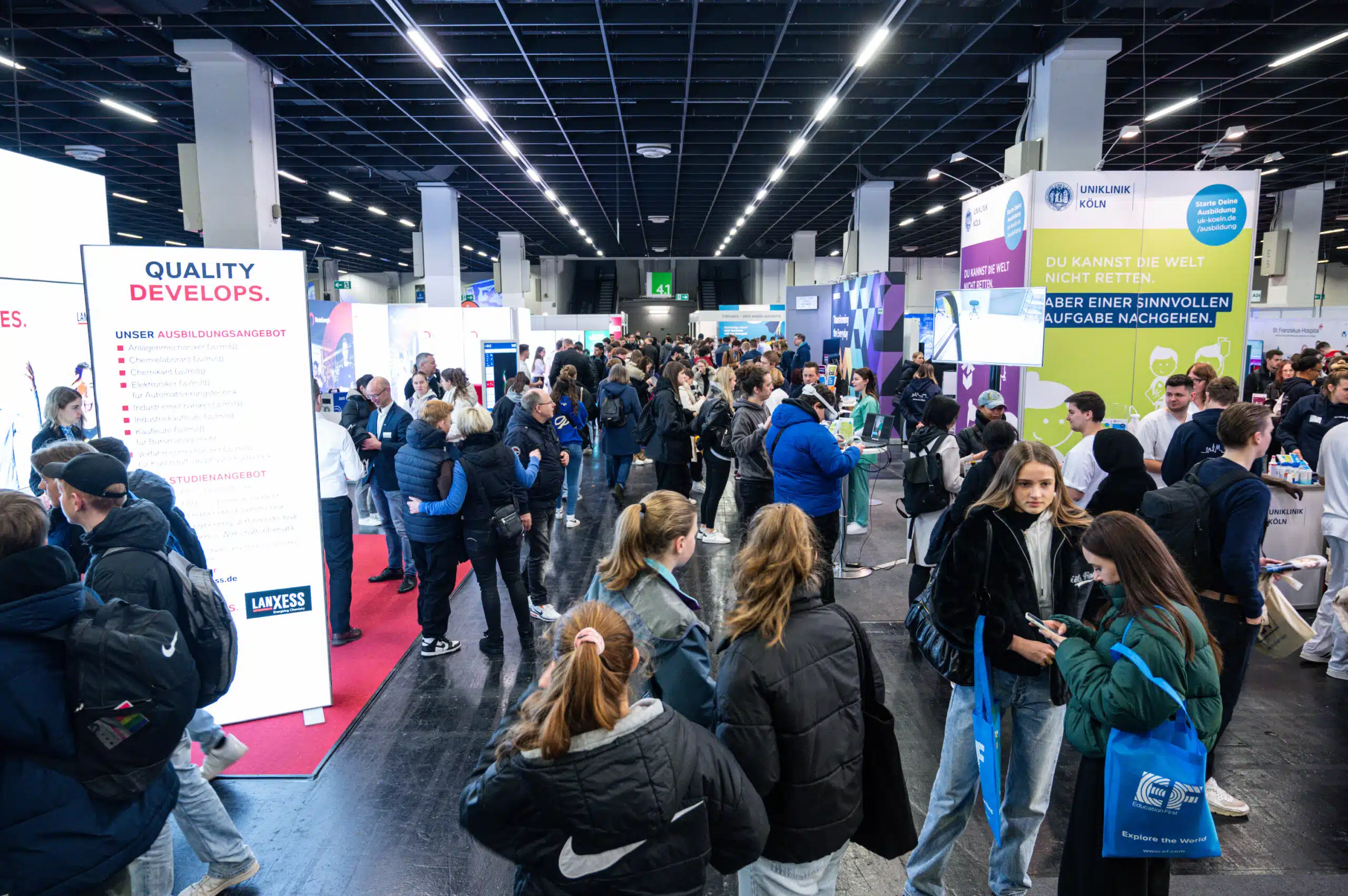 Einstieg Cologne, Almanya'nın Köln kentinde düzenlenen büyük bir eğitim ve kariyer fuarıdır. Bu etkinlik, lise ve üniversite öğrencileri, mezunlar ve kariyer değişikliği yapmak isteyen bireyler için tasarlanmıştır. Katılımcılar, üniversiteler, şirketler, meslek okulları ve danışmanlık kurumlarıyla doğrudan iletişim kurarak eğitim ve kariyer fırsatları hakkında bilgi alabilirler. Fuar, çeşitli seminerler, atölye çalışmaları ve birebir danışmanlık hizmetleriyle gençlere yön verme amacını taşır.